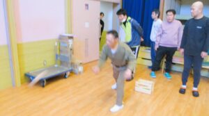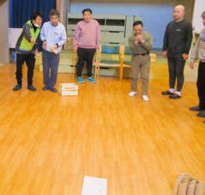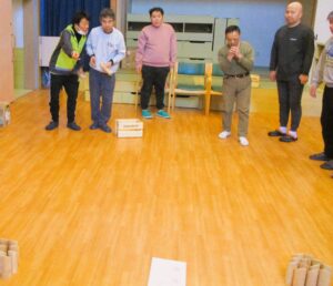 日曜日に初めてのモルックの取り組みを行いました。 6名の利用者さんと職員3名でのゲーム形式で行いました。 2チームに分かれて、3試合を行いました。 皆さん一生懸命に投げられて、楽しみながらゲームに取り組まれていました。 参加職員より